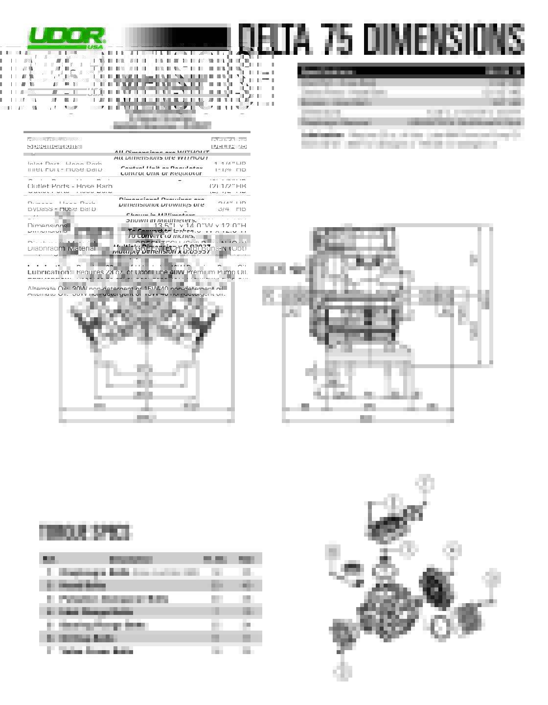 - Lubrication: Requires 20 oz. of Udor Lube 40W Premium Pump Oil or 30W non-detergent oil
